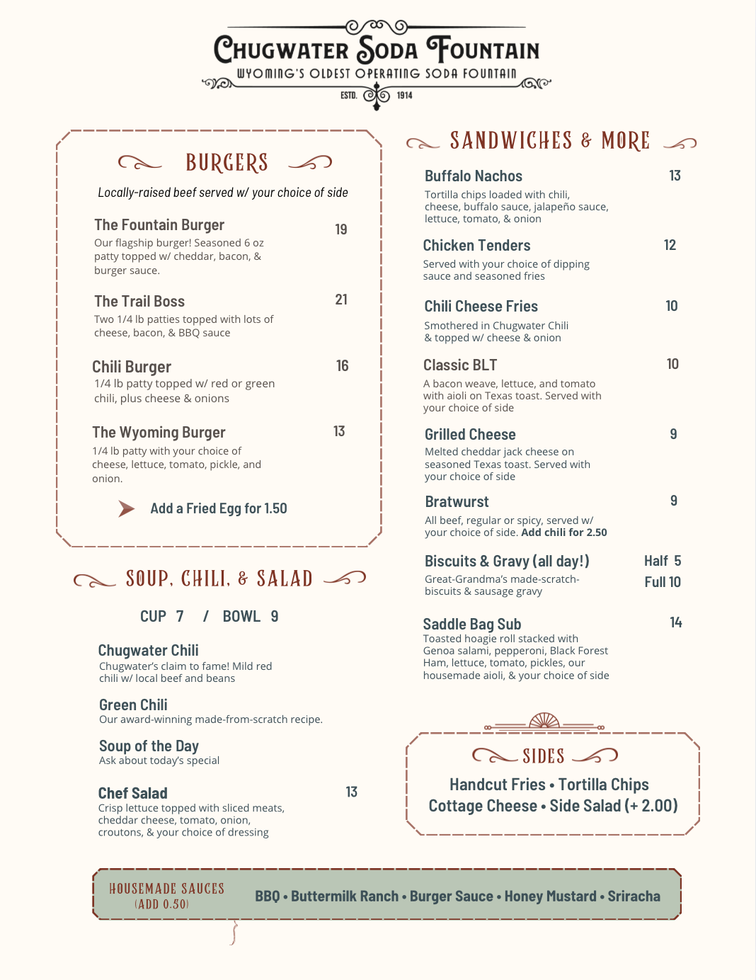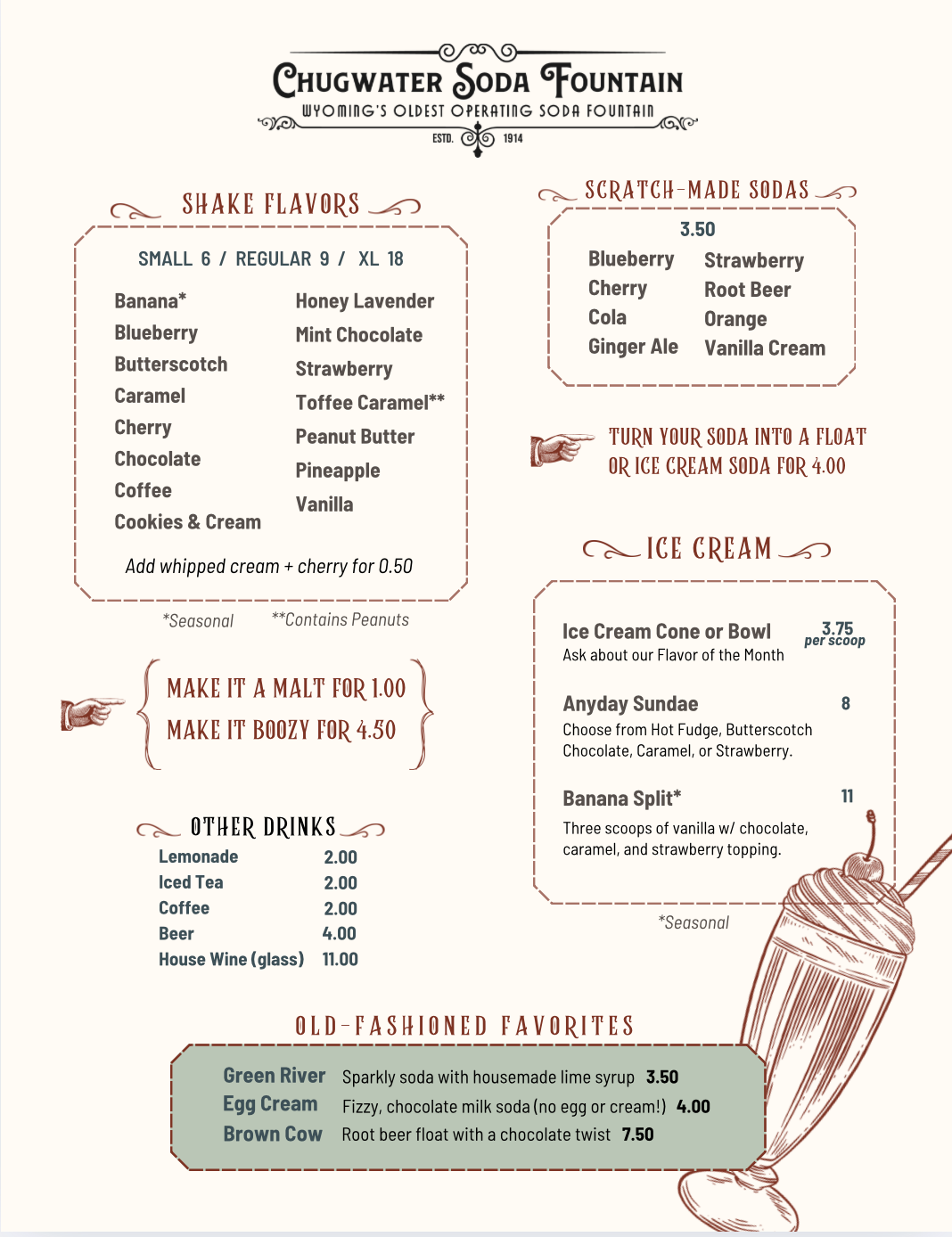 Your choice of syrup mixed with carbonated water from our vintage fountain.